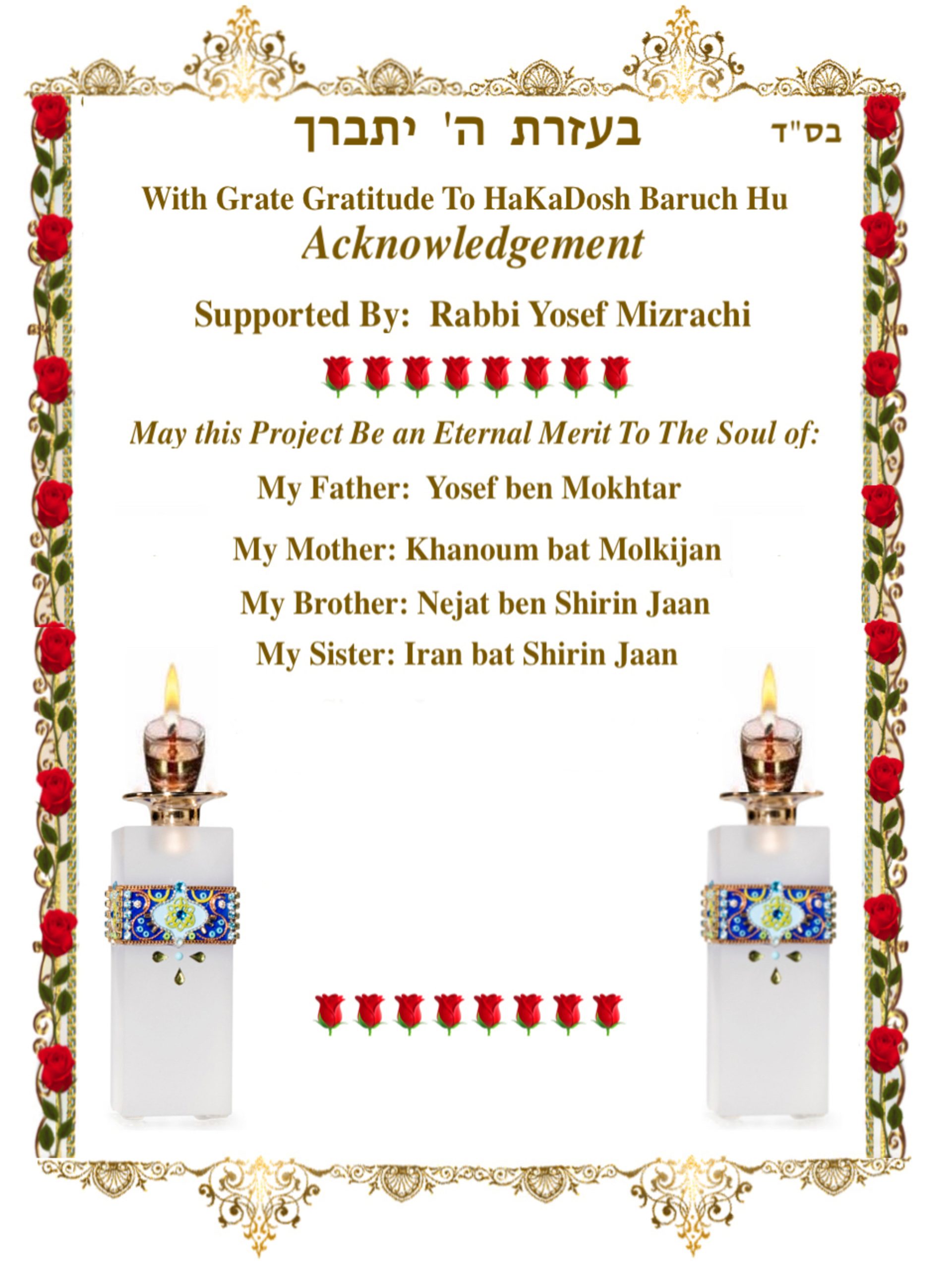 With Grate Gratitude To HaKaDosh Baruch Hu Acknowledgement